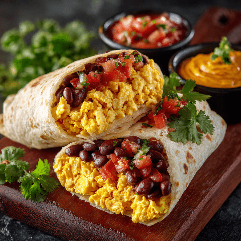 A warm flour tortilla filled with scrambled eggs, sautéed vegetables, savory sausage, and melted cheese—Breakfast Burrito is a hearty, satisfying start to your morning (or any time of day when you need a filling meal).