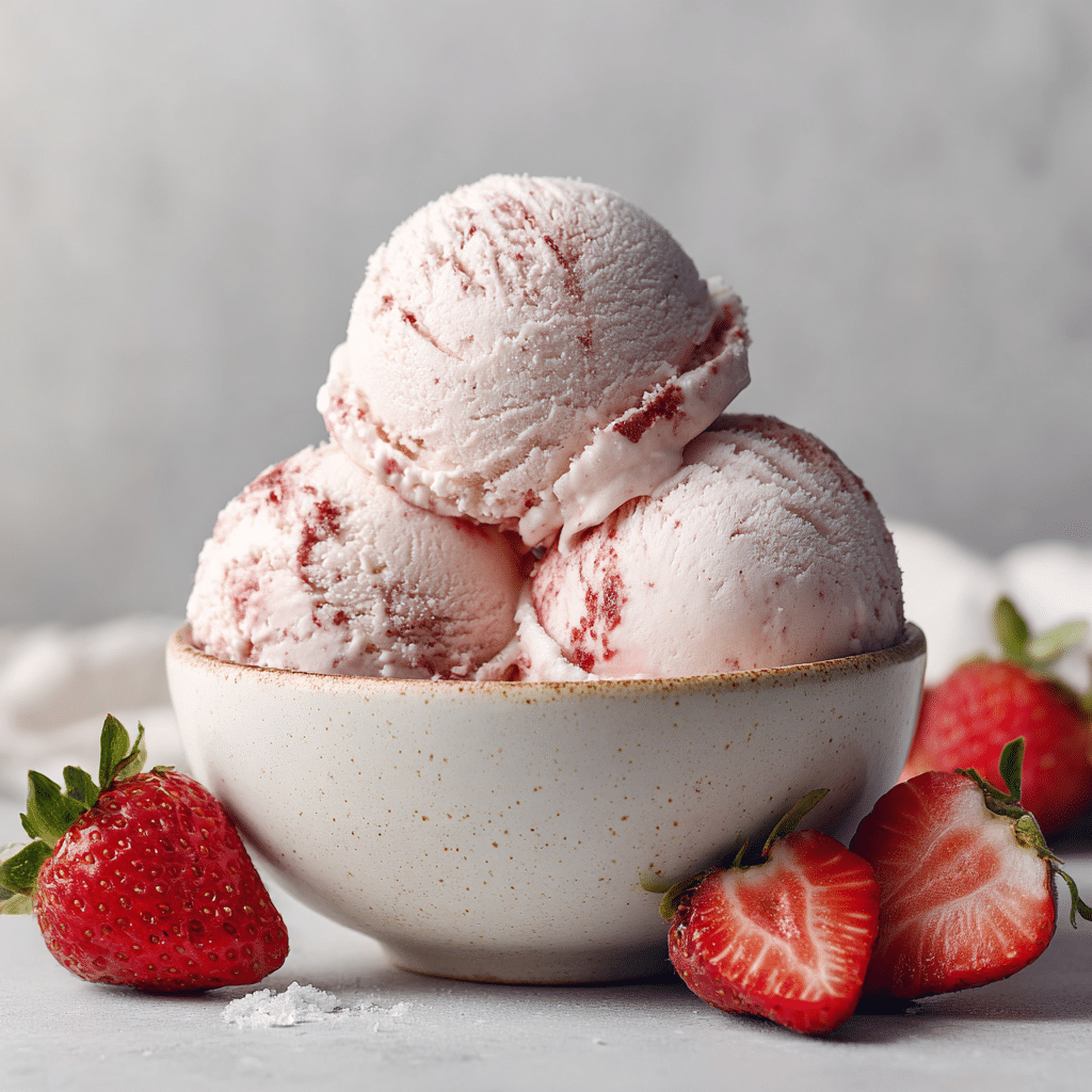 This ice cream pairs wonderfully with warm desserts like fresh berry cobbler or a molten chocolate cake. The contrast between the cold, creamy strawberry ice cream and hot, comforting desserts makes every bite a joyful experience. For a lighter option, serve alongside a crisp biscotti or buttery shortbread cookie.