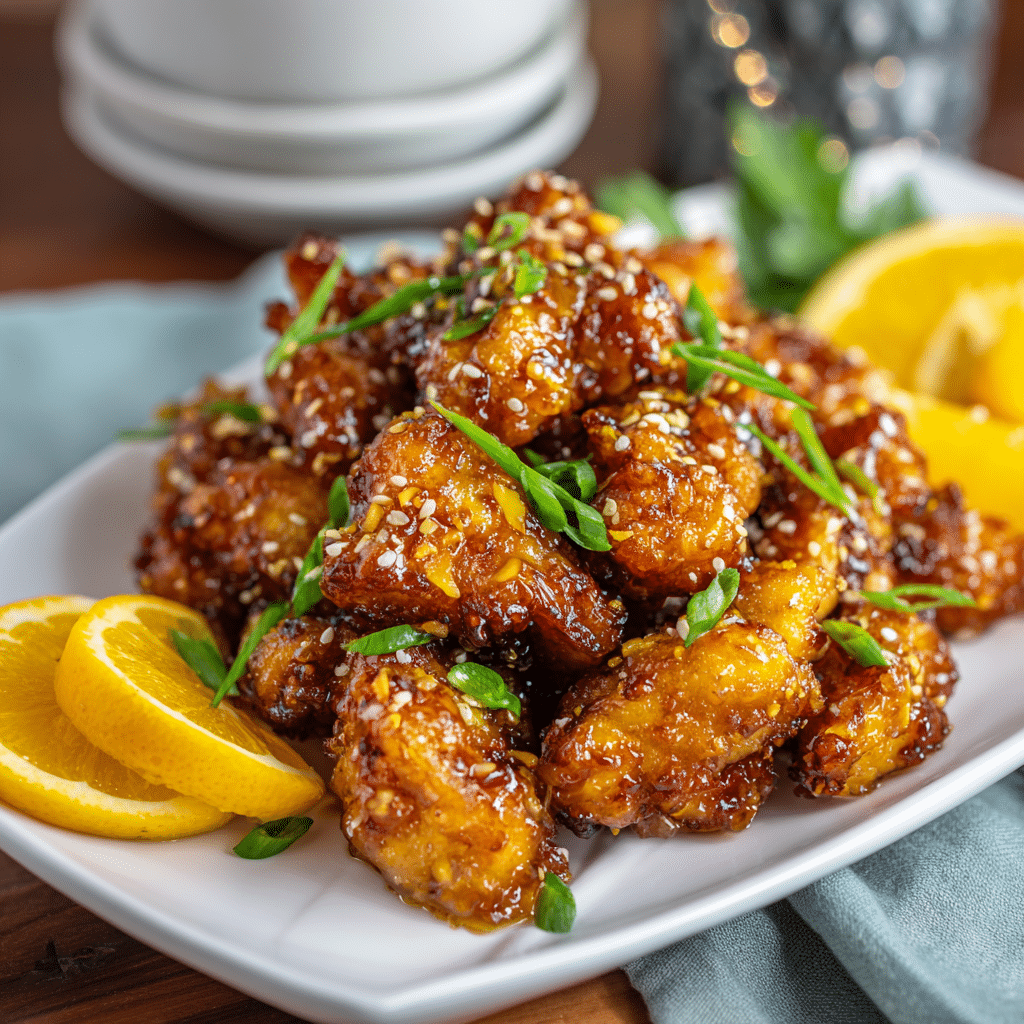 Garnishing your Orange Chicken adds not only color but an extra layer of texture and freshness. A sprinkle of finely chopped green onions or a handful of toasted sesame seeds works wonders. You can also add some thinly sliced red chili for a subtle kick and vibrant look that will make the dish pop on the plate.