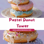 Keywords: donut tower, pastel donuts, dessert tower, party dessert, baby shower treat