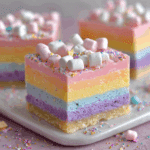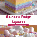 Keywords: rainbow fudge, layered fudge, white chocolate fudge, colorful dessert, party treat